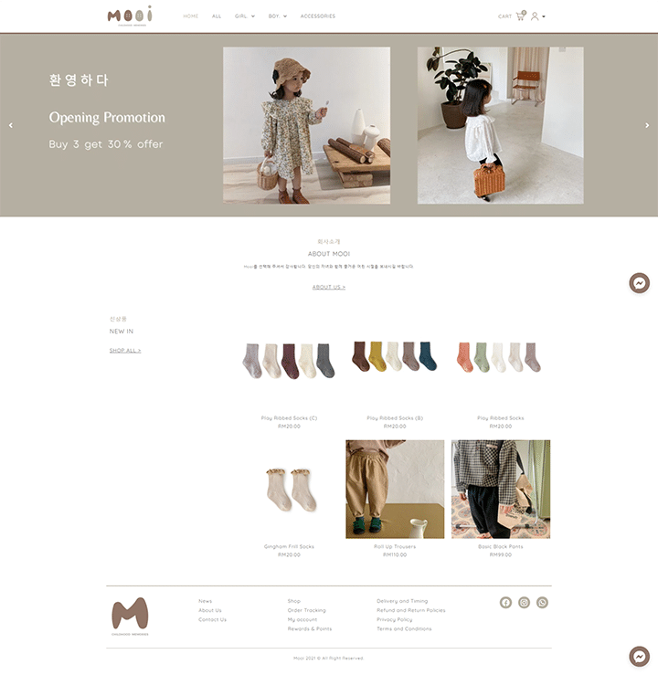 我们会协助客户放置捷径 WhatsApp Button 在每页,可以让网站访客直接联络客服,除此之外,网店商城的配套也包括了把产品同时链接去 Facebook 和 Instagram